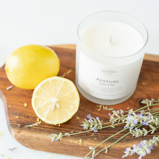 Lemon & Lilac | Non-Toxic, Long-Burning Candle Hand Poured in the USA | Restore | Bible Verse Candle