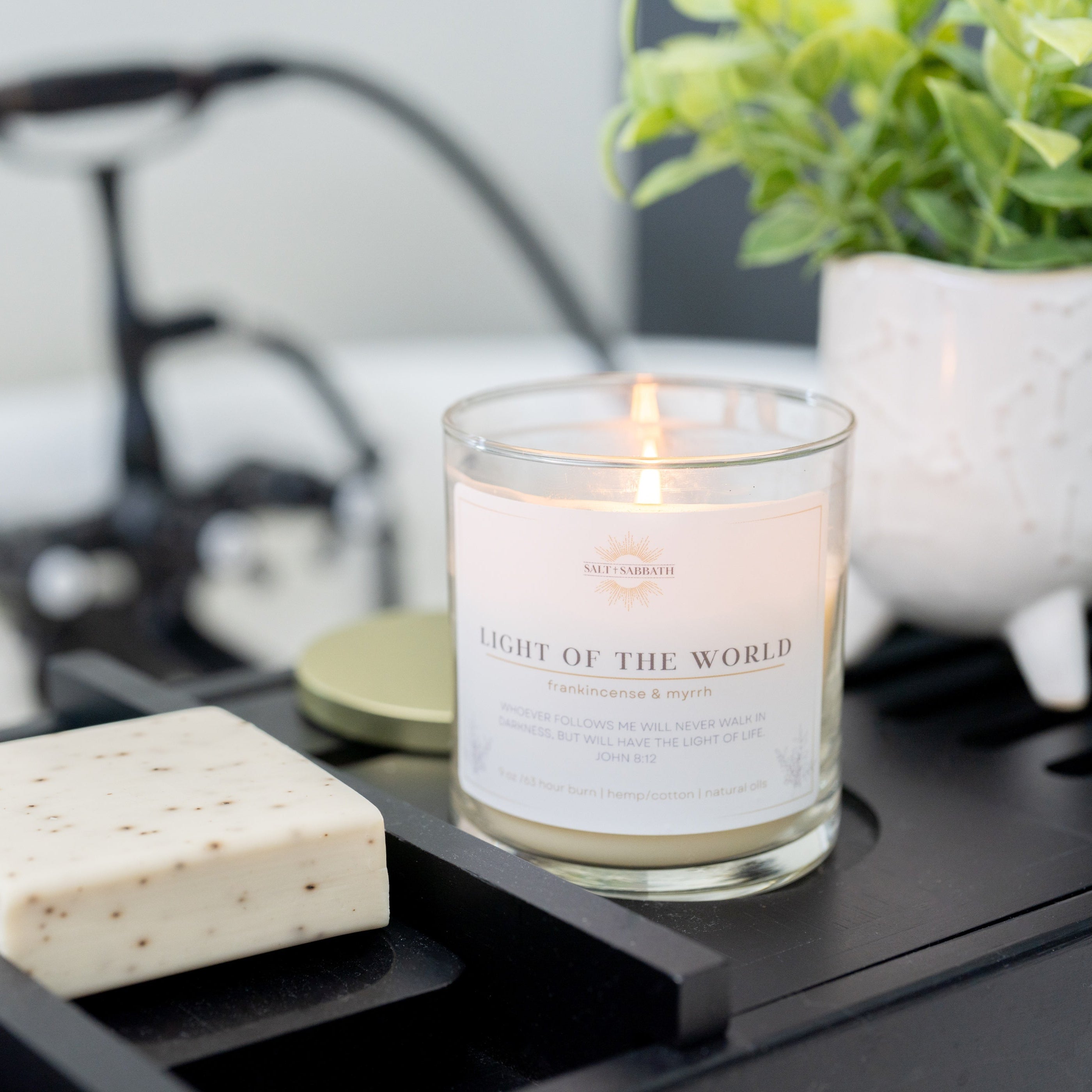 Frankincense & Myrrh | Non-Toxic, Long-Burning Candle Hand Poured in the USA | Light of the World | Bible Verse Fall Candle